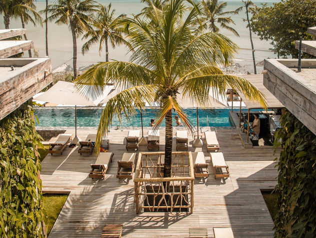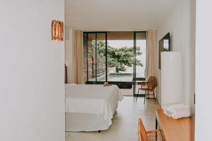 Pensé dans une démarche écologique, l’hôtel mêle architecture moderne et matériaux naturels. Les chambres, élégantes et lumineuses, s’ouvrent toutes sur un balcon privé, certaines avec une piscine privée pour savourer la vue dans une bulle de calme. Une immense piscine à débordement longe la mer, et l’ensemble du lieu respire la douceur de vivre, entre végétation luxuriante et lignes épurées.