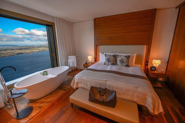 Le Bürgenstock Hotel propose 102 chambres et suites exceptionnelles : toutes disposent d'une baie vitrée offrant une vue panoramique sur le lac, d'une cheminée et d'une baignoire double. D'une surface minimale de 42m2, les chambres vous réservent un espace quasi-inédit pour un hôtel Européen. Pour un séjour absolument unique sous le signe de la détente, craquez pour la Spa suite et profitez de votre propre sauna et d'une pièce de massage privative. Vous disposerez ainsi d'une incroyable baignoire avec cheminée et vue sur le lac des Quatre-Cantons. Vous vous imaginez déjà prendre un bain face au soleil couchant ? Le Bürgenstock Hotel ne se contente pas de proposer des chambres avec des vues uniques : il dispose également de l'un spa les plus spectaculaires au monde. L'Alpine Spa, c'est plus de 10 000m2 de détente avec quatre piscines, plusieurs saunas et hammams, une zone nudiste et un espace fitness. Le clou du spectacle, c'est bien évidemment l'incroyable piscine à débordement qui surplombe le lac de Lucerne. Chauffé à 35°C toute l'année, ce bassin vous réserve une expérience absolument incroyable et donne l'impression de flotter littéralement au dessus du lac, paysages époustouflants à la clé. L'hiver, vous pourrez nager tranquillement tout en regardant la neige tomber autour de vous, pour une expérience de détente unique. Côté restauration, le Bürgenstock Resort propose une offre très large puisqu'il regroupe 10 bars et restaurants, tous proposant une cuisine de qualité : cuisine asiatique revisitée, burgers gastronomiques, petit déjeuners à la carte avec vue panoramique sur les montagnes... Vous l'aurez compris, le Bürgenstock Hotel est l'endroit parfait pour un séjour romantique complètement hors du temps, et nous vous le recommandons particulièrement pour fêter vos plus belles occasions : lune de miel, anniversaire de mariage ou tout simplement week-end plaisir en couple... Bon séjour !
