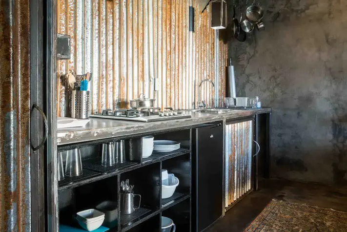 L'intérieur du logement est spacieux : on y retrouve un lit king-size, une cuisine équipée, une télévision, un lave-linge et une terrasse privée pour admirer la nature. Les propriétaires ont rajouté une touche artistique au lieu qui offre un cadre idéal pour des vacances loin de tout.