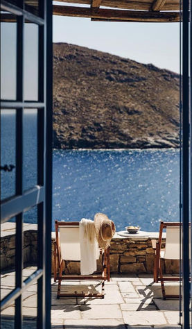 Une superbe terrasse s'ouvre sur la Mer Égée et invite à la contemplation : perdez vous face au scintillement de l'eau, et laissez vous apaiser par les bruits de la mer.
