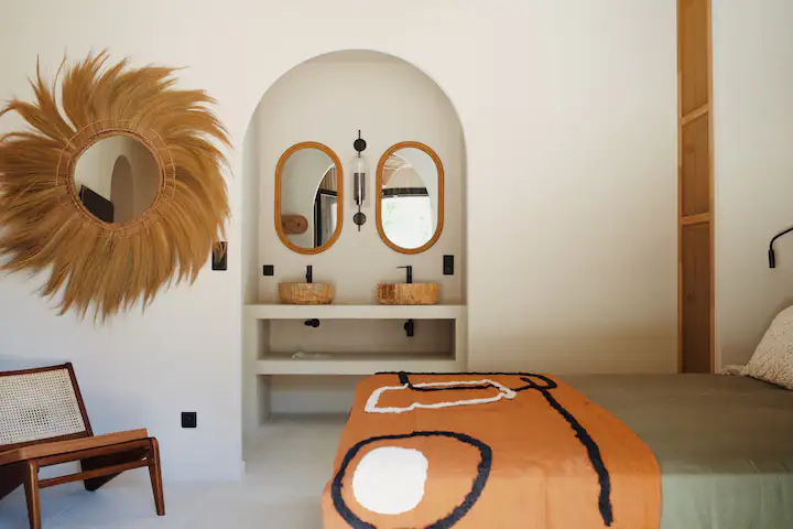 C'est quoi : Un hôtel de rêve inauguré l'été dernier à Mykonos, dans la magnifique baie d'Ornos. Le Myconian O propose d'incroyables suites avec piscine privée XXL au design minimaliste, dans un calme total. À quelques mètres, on retrouve une piscine monumentale à débordement qui borde un restaurant à l'ambiance bohème, et un bar avec les pieds dans le sable. On y aperçoit la plage privée du Myconian O, réservée aux clients de l'hôtels avec ses transats cosy à quelques centimètres de l'eau. L'adresse parfaite pour démarrer l'été à Mykonos !